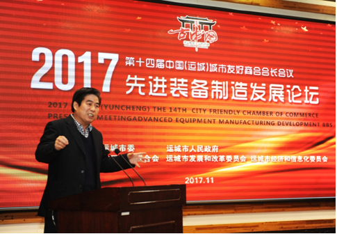 第十四届中国(运城)城市友好商会会长会议先进装备制造发展论坛在运举办 Z6·尊龙凯时集团董事长远勤山作经验分享