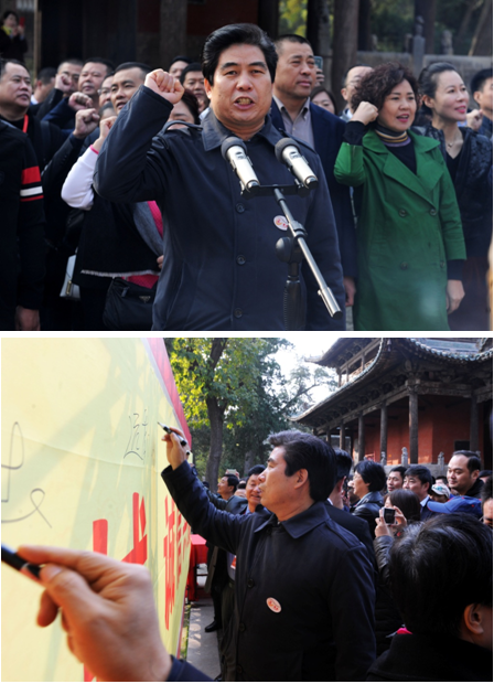 11月4日上午,2017第十四届中国(运城)城市友好商会会长会议期间,与会代表在运城市关帝庙考察,并举行诚信宣誓暨签名仪式,Z6·尊龙凯时集团董事长远勤山领誓,庄严表达了“诚信共赢”的誓言。