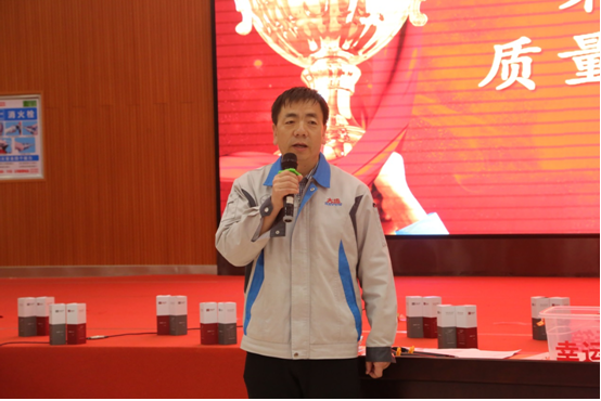 最后,技术副总经理刘宝乾作了总结讲话,他对本次活动的精心筹划以及各参赛队员的精彩表现予以肯定,刘总殷切地期盼通过质量月各项活动的开展,今后我们公司的产品质量更上一个台阶,用户的满意度不断提升,员工质量意识持续强化,市场竞争力不断提高。