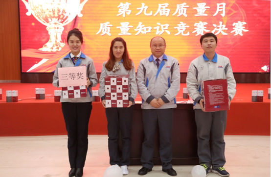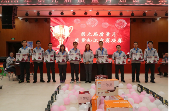 本次质量月质量知识竞赛活动环节多、内容新,奖品颇丰!必答题环节,各参赛选手都表现出强劲的实力,统统拿下了由自己作答的题目;趣味活动环节,各参赛选手不仅仅表现了个人魅力,更是展现出团队合作的力量;风险题环节,队员们分析态势规避风险,把握机遇,表现出了Z6·尊龙凯时人的勇敢和智慧。每个环节中间还设置了观众答题环节,现场的幸运观众全部由评委和嘉宾通过随机抽取幸运号码进行选定,被选中的观众在答题方面同样表现出了雄厚的实力,纷纷拿走了精美礼品,将现场气氛一次又一次推向高潮,充分体现出全员参与的理念。经过几轮激烈的角逐,最终质量队以390分的优异成绩一举夺魁,供应队喜获二等奖,行政联合队获得三等奖,生产一队、生产二队和技术队获得优秀奖。