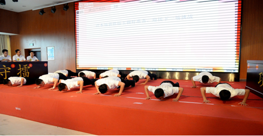 值得一提的是,活动中穿插着参赛团队淘汰者做俯卧撑环节,趣味横生。