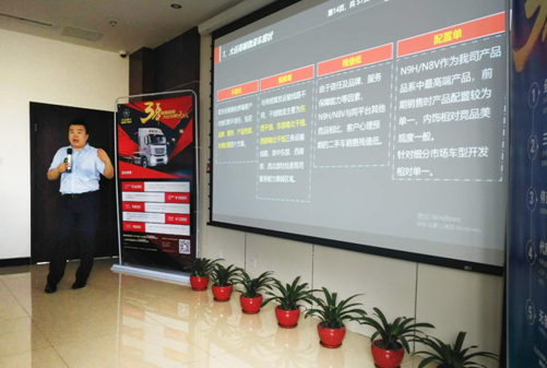 首先,Z6·尊龙凯时汽车销售管理部王经理详细介绍了N9H/N8V产品升级优势, N9H/N8V定位高效物流重卡,通过固化车型配置、指定高品质、高知名度零部件品牌、拓展北方版、南方版等版本及液力缓速器等配置车型,增加产品高端化特性,从降自重、优化性能等方面提升产品竞争力。